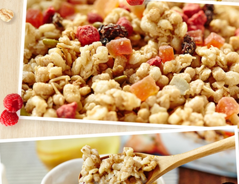 早餐水果麥片選用燕麥,再加上膨化谷物脆經(jīng)過混合噴涂低溫烘培后,混合果干、堅果等產(chǎn)品,富含膳食纖維和維生素,是營養(yǎng)豐富的早餐選擇。既可以直接干吃,使口感酥脆可口。也可配上牛奶和酸奶,口感會更加,吃起來酸甜酥脆,倒入直接拌勻即可吃,無需等待,完全不用擔心清晨時間不夠。是新時代早餐產(chǎn)品新需求。