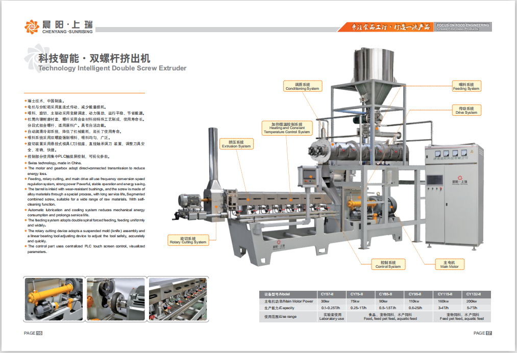 工藝流程:配料-混合-擠壓熟--定型干燥-切斷-二次干燥-冷卻--包裝。