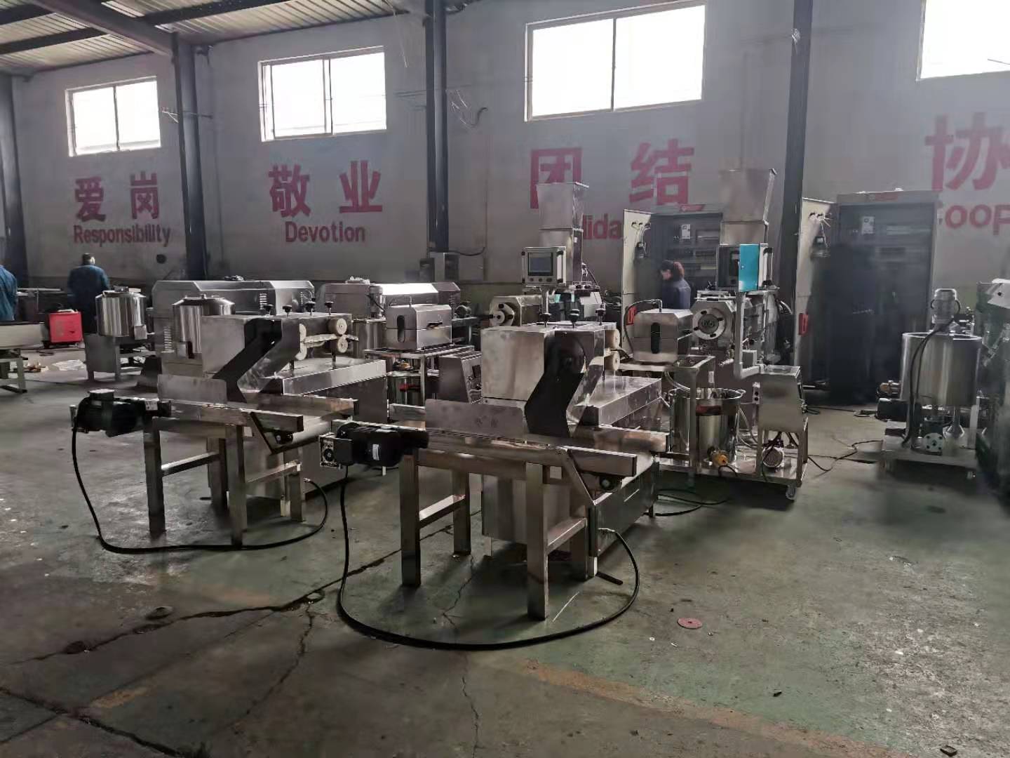 4、注芯機(jī):膨化機(jī)生產(chǎn)出空心管的瞬間講芯料瞬間注入,可注入花生醬、巧克力醬、糖稀等。