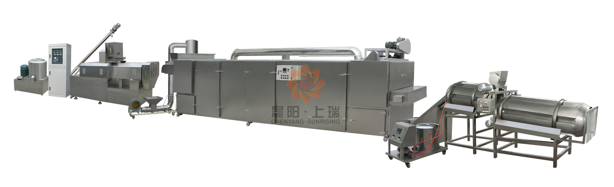 大家都知道:傳統(tǒng)的膨化狗糧顆粒,主要原料是淀粉類的谷物,主要是玉米,肉類超過了一定比例,就不能夠膨化成型,做出來的形狀就不夠美觀。所以,用傳統(tǒng)擠壓膨化工藝的設(shè)備生產(chǎn)出的狗糧顆粒,只能是低蛋白高淀粉類的顆粒。不能夠生產(chǎn)出高蛋白的狗糧顆粒,針對以上原因和市場需求的現(xiàn)實,我們濟南晨陽科技有限公司,研發(fā)出一整套純?nèi)夤芳Z機器設(shè)備生產(chǎn)線,只為滿足高端狗糧需求者的客觀需求。