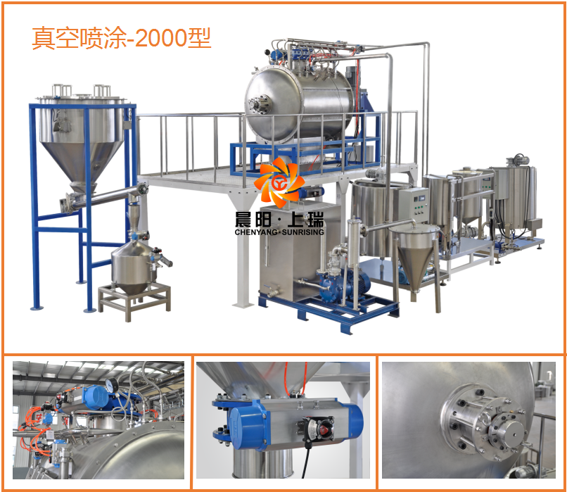 真空噴涂使用晨陽(yáng)自行研發(fā)的第三代真空噴涂機(jī),該真空噴涂系統(tǒng)目前使用臥式單軸漿葉混合機(jī),該機(jī)比較適合2噸生產(chǎn)線的產(chǎn)品配置使用,具有高性價(jià)比的使用效果。密封閥門(mén)使用進(jìn)口配置,機(jī)械密封使用合資配置,減速機(jī)使用硬齒面減速機(jī),食品接觸完全304材質(zhì)。真空狀態(tài)下噴涂油脂含量可以到30%,真空壓力達(dá)0.095mpa,動(dòng)態(tài)狀態(tài)下保壓0.09mpa堅(jiān)持10分鐘在以上。配置水冷真空泵。油脂,風(fēng)味劑都是在真空狀態(tài)下完成,油脂獨(dú)立稱重系統(tǒng),膏狀風(fēng)味劑,獨(dú)立稱重系統(tǒng),不同液態(tài)使用不同的輸送泵,晨陽(yáng)公司自行編輯的運(yùn)行軟件在第三代真空噴涂已經(jīng)實(shí)現(xiàn)完全自動(dòng)化,穩(wěn)定化,參數(shù)可視化,重要部位數(shù)據(jù)監(jiān)視報(bào)警,數(shù)據(jù)存儲(chǔ),配方留檔等強(qiáng)大功能。