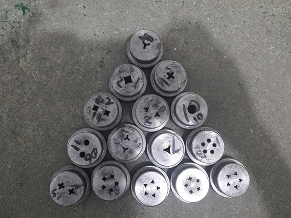 簡單聊聊:具有多種孔型組合的寵物詞料成型模具,設(shè)置可生產(chǎn)出圖形寵物飼料的圖形顆粒模具和可生產(chǎn)出異 形寵物詞料的異形顆粒模具,從而使用一個模具即可同時生產(chǎn)出多種形狀的寵物詞料,并且圖形顆粒模具和 異形顆粒模具均為可拆卸地安裝于模具座上,從而可根據(jù)不同的生產(chǎn)需求來分別確定圖形顆粒模具和異形顆 粒模具的安裝數(shù)量、分布和形狀組合,從而在轉(zhuǎn)產(chǎn)時無需將模具座從螺旋擠壓膨化機構(gòu)上拆卸下來,而是對 模具座的顆粒模具組進(jìn)行調(diào)整即可,大大地減輕工作量,提高生產(chǎn)效率,無需購置多個具有不同??捉M合的 模具座,生產(chǎn)成本降低。而且可根據(jù)不同形狀的產(chǎn)品的混合比例來設(shè)置圖形顆粒模具和異形顆粒模具的安裝 數(shù)量,從而即時生產(chǎn)出符合混合比例的產(chǎn)品,避免了現(xiàn)有寵物詞料生產(chǎn)中需要對成品進(jìn)行混合的操作。