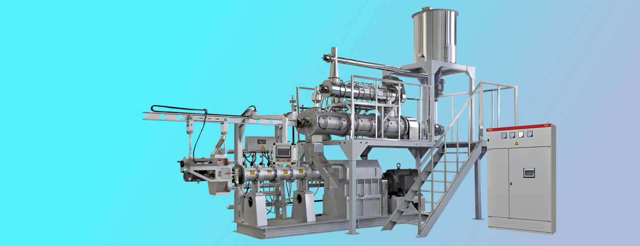 雙螺桿膨化機由供料系統(tǒng)、擠壓系統(tǒng)、旋切系統(tǒng)、加熱系統(tǒng)、冷卻系統(tǒng)、傳動系統(tǒng)、控制系統(tǒng)組成。該機適用原料廣泛、生產(chǎn)產(chǎn)品多樣,變頻調(diào)速、自動化程度高、運行平穩(wěn)、使用壽命長。