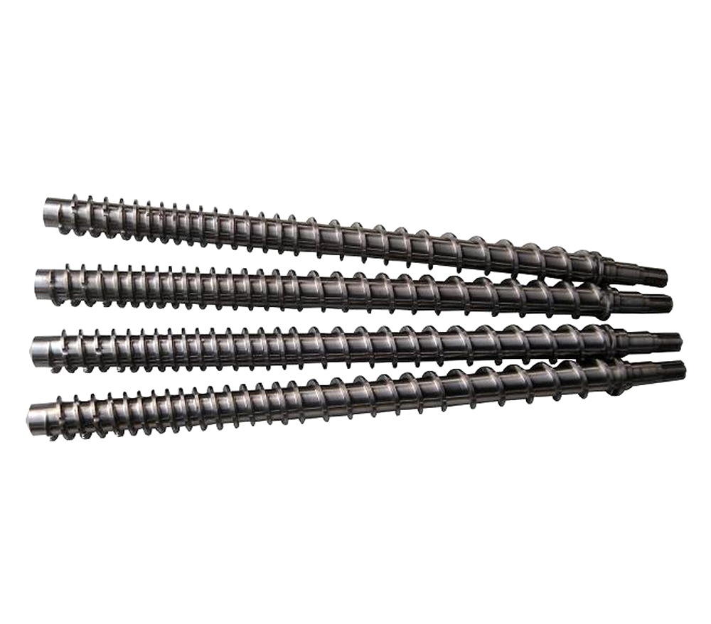 (2)擠出系統(tǒng): 由螺桿,機(jī)筒,連接段組成; 螺桿為38crmoal材料,滲氮深度5mm,耐磨耐用,機(jī)筒為國標(biāo)45號(hào)鋼,與螺桿配合間隙控制在0.5mm以內(nèi)