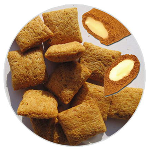 產(chǎn)品簡介:擠壓膨化小食品生產(chǎn)線采用雙螺桿擠壓技術(shù)將不同谷物的原料經(jīng)混合后在膨化機(jī)內(nèi)受高溫高壓,在磨具擠出后瞬間失壓,形成多孔,松軟的膨化食品,變換磨具即可生產(chǎn)多種形狀產(chǎn)品,擠壓膨化食品生產(chǎn)線可以生產(chǎn)芝士球,玉米酥,麥香雞塊等產(chǎn)品,增加設(shè)備配置可以生產(chǎn)夾心米果,米餅等夾心型膨化食品。