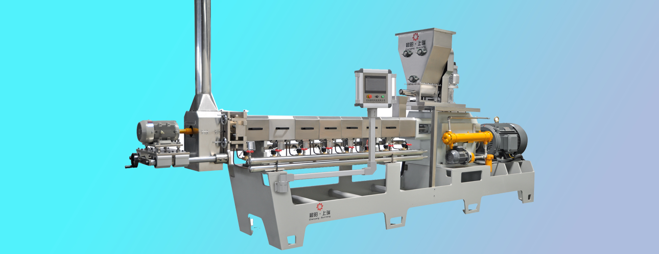 雙螺桿膨化機由供料系統(tǒng)、擠壓系統(tǒng)、旋切系統(tǒng)、加熱系統(tǒng)、冷卻系統(tǒng)、傳動系統(tǒng)、控制系統(tǒng)組成。該機適用原料廣泛、生產產品多樣,變頻調速、自動化程度高、運行平穩(wěn)、使用壽命長。